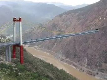 該大橋整體設計創(chuàng)新采用了獨塔單跨地錨式懸索橋結(jié)構(gòu),所設計的766米跨徑, 已屬目前世界上此類結(jié)構(gòu)式橋梁中的最大跨徑,滾軸式復合散索鞍結(jié)構(gòu)在國內(nèi)外大跨懸索橋上也是第一次采用。